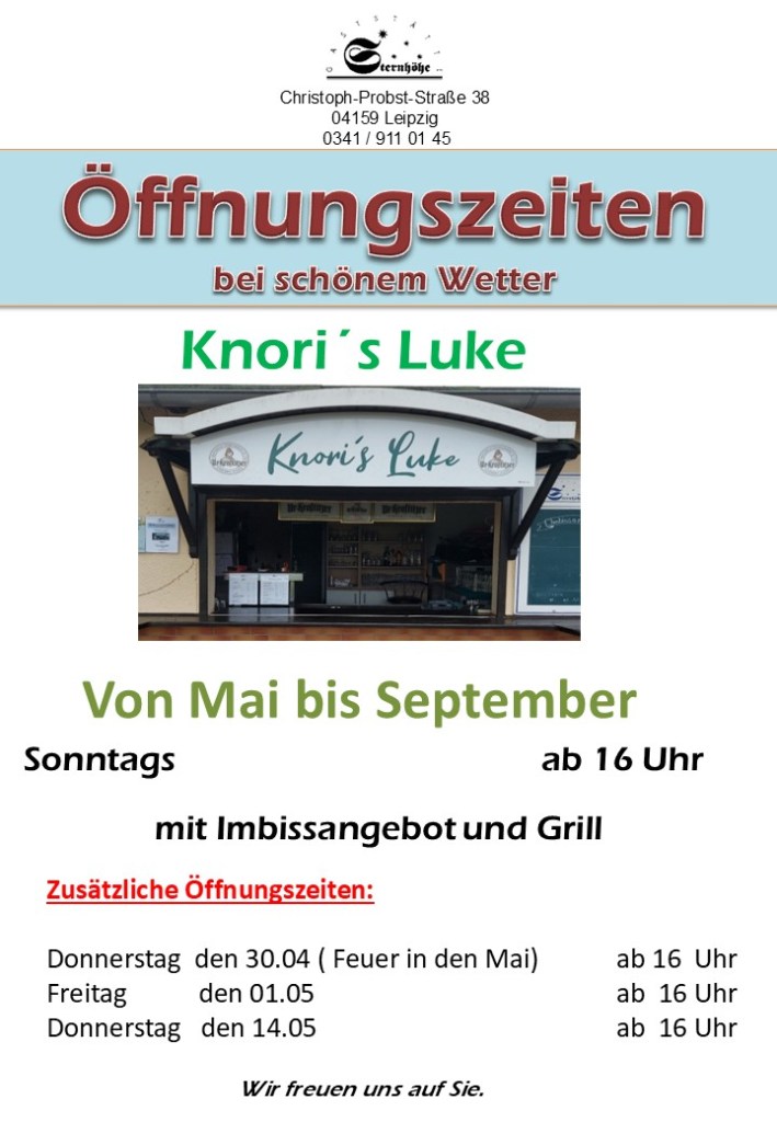 Öffnungszeiten Informationen Gaststätte befindet sich in der Christoph-Probst-Straße 38 in 04159 Leipzig-Möckern Hausordnung Hunde Feiern aller Art richten wir nach vorheriger Absprache gern für Sie in unserer Gaststätte aus.Absprachen und Reservierungen können sie zu unseren Geschäftszeiten gerne persönlich in unserer Gaststätte oder telefonisch unter 03 41 / 911 01 45 vornehmen. Wir freuen uns auf Sie!